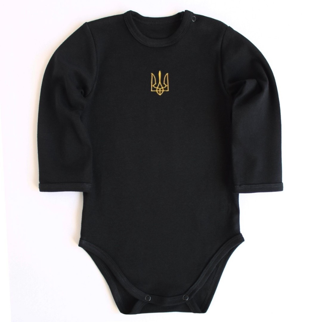 Цей чорний боді — універсальний вибір для подарунка новонародженому. Золота вишивка тризуба виглядає елегантно та символічно, підходить як для хлопчика, так і для дівчинки.