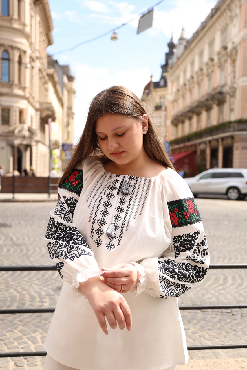 Π¦Ρ ΠΆΡΠ½ΠΎΡΠ° Π²ΠΈΡΠΈΠ²Π°Π½ΠΊΠ° ΡΡΠ²ΠΎΡΠ΅Π½Π° ΡΠΏΠ΅ΡΡΠ°Π»ΡΠ½ΠΎ Π΄Π»Ρ Π²Π»Π°ΡΠ½ΠΈΡΡ Π±Π°ΡΠ°Π»ΡΠ½ΠΈΡ ΡΠΎΠ·ΠΌΡΡΡΠ². ΠΠΎΡΠ΄Π½Π°Π½Π½Ρ ΠΌΠΎΠ»ΠΎΡΠ½ΠΎΠ³ΠΎ ΡΠΎΠ½Ρ ΡΠΊΠ°Π½ΠΈΠ½ΠΈ Π· ΡΠΎΡΠ½ΠΎΡ Π²ΠΈΡΠΈΠ²ΠΊΠΎΡ Ρ ΡΠ΅ΡΡΠΈΠΊΠΎΠΌ Π²ΠΈΠ³Π»ΡΠ΄Π°Ρ Π±Π»Π°Π³ΠΎΡΠΎΠ΄Π½ΠΎ ΡΠ° ΡΡΠΈΠ»ΡΠ½ΠΎ. Π―ΡΠΊΡΠ°Π²Ρ ΡΠ΅ΡΠ²ΠΎΠ½ΠΎ-Π·Π΅Π»Π΅Π½Ρ Π²ΡΡΠ°Π²ΠΊΠΈ Π½Π° ΠΏΠ»Π΅ΡΠ°Ρ Π½Π°Π΄Π°ΡΡΡ ΠΎΠ±ΡΠ°Π·Ρ Π΅ΡΠ½ΡΡΠ½ΠΎΠ³ΠΎ ΡΠ°ΡΠΌΡ.