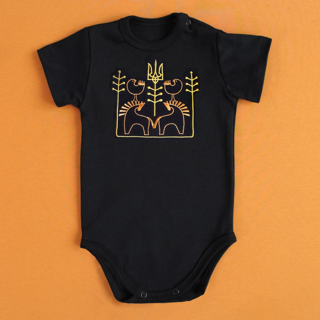Чорний боді для немовляти з етно вишивкою Воля