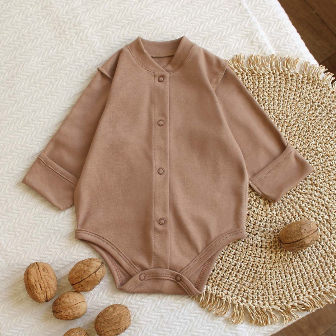 Колір: шоколадний. Доступні розміри: 56 та 62. Стиль — унісекс, пасує як хлопчикам, так і дівчаткам. Підходить для пологового, щоденного носіння або у подарунок.
