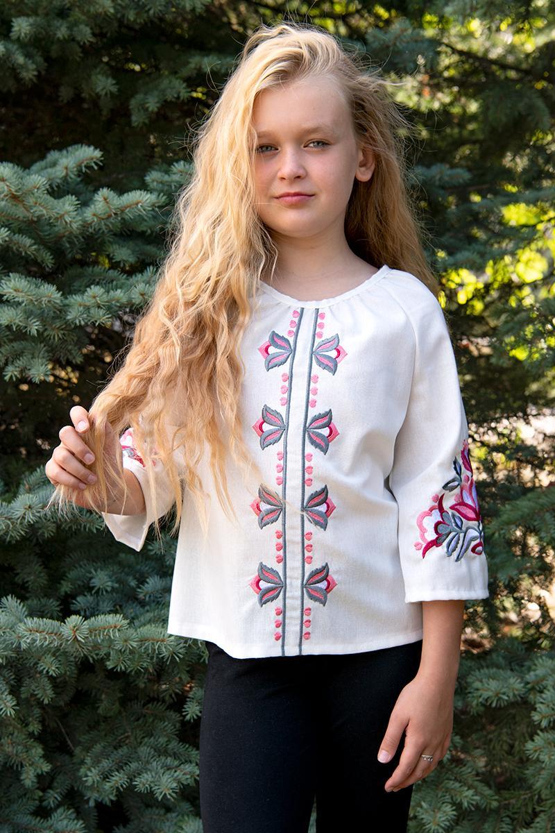 Льняна вишиванка для дівчинки з яскравою гладдю
